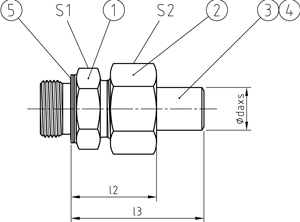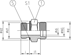 Auch mit zylindrischem Whitworth Rohrgewinde nach ISO 1179-2 (Typ GU.) erhältlich. Metrische Einschraubzapfen werden zur Identifikation mit einer umlaufenden Kerbe gekennzeichnet.